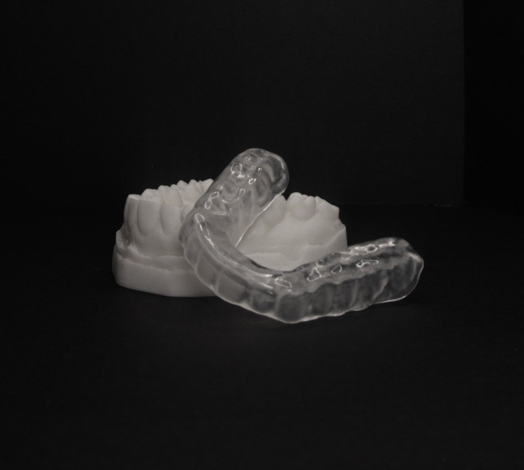 Férula de descarga fabricada por fresado digital CAD-CAM, ofreciendo máxima precisión, ajuste y comodidad.
